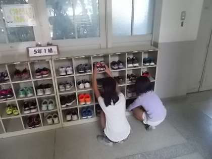 ※写真は自分たちの靴箱を整理している様子です。