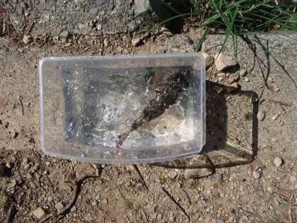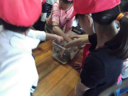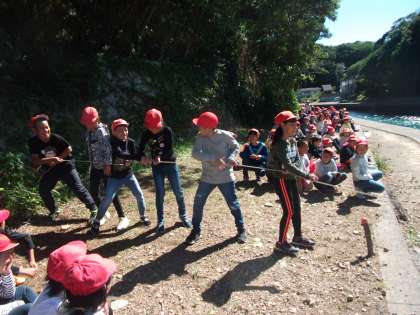しかけたかごを引き上げました。ほとんどのかごに何かはかかっていて,あげるたびに歓声があがっていました。魚等の観察も興味深げでした。