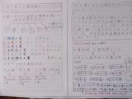 社会科「工業生産」の学習を自主学習ノートにまとめました。大切なポイントを自分の言葉でまとめることが上手になってきました。本校の「見つけたよ広場」に全校のノートを掲示しています。機会があればご覧ください。