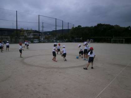 体育科の「ボール遊び」で,ころがしドッジをしました。当てるために,キャッチしてすぐに転がしたり,ボールをよけるためにジャンプしてみたりと様々な工夫をして活動することができました。楽しそうな声がたくさん聞こえてきました。