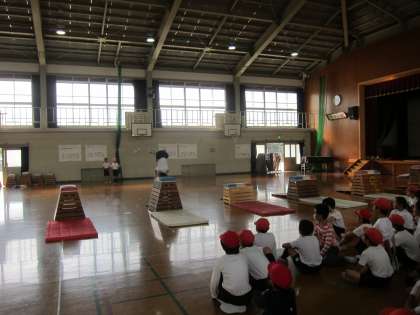 最後の跳び箱です。希望者で,できるようになった技を発表しました。できるようになった技や高さはそれぞれですが,みんなの成長をみんなで喜び合いました。