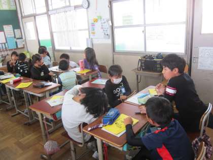 お互いの筆箱の中身について,質問しあいました。繰り返す中で,だんだん言える言葉が増えてきました。