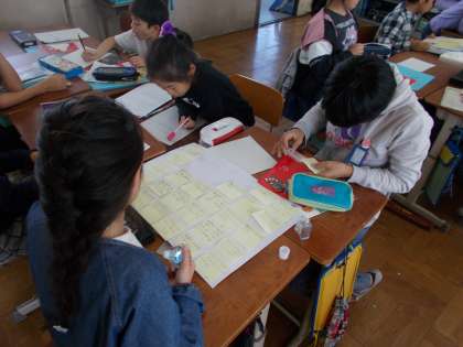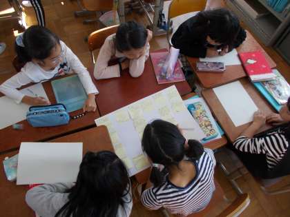 高齢者の方々についての調べ学習をしている様子です。付箋を使って,分かっていること,調べることを整理し,どんどん進めています。一人一人が次にすることを考えて,自ら学習をしてくれています。