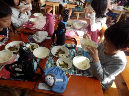 また沢煮わんに入っている九条ねぎが,地産地消のものだと知ると誇らしげな表情が見えました。にしんの細かな骨に苦戦しつつも,美味しそうに食べていました。