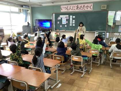 20日に栄養教諭の田畑先生に食の指導をしていただきました。給食を食べた後に,給食当番の子どもたちが,給食調理員さんに自分で感じた給食の味を伝えていました。給食調理員さんも喜んでくださいました。
