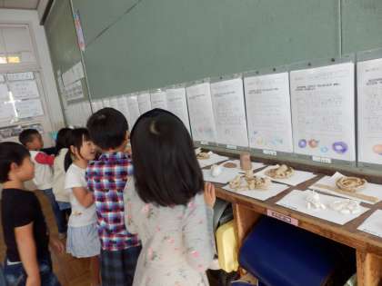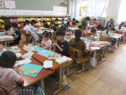 図画工作科の学習で,ねんどを使って自分のイメージするごちそうを作りました。粘土をたたいたり,まるめたり,ちぎったりして…とっておきの一品ができました!