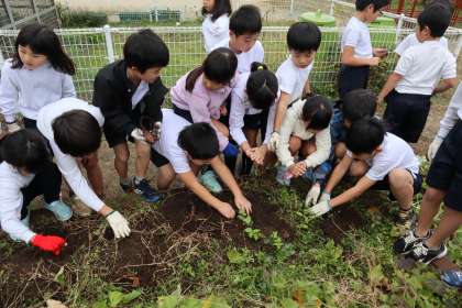 今日は春に植えたサツマイモの収穫をしました!大きい、小さい、長細い、丸いなどいろいろな形のサツマイモを収穫することができました。