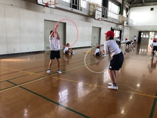 いろいろな用具を使ったり,グループやペアで活動したりしてめいっぱい楽しんでいます!