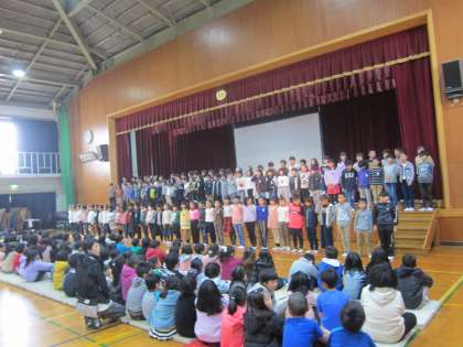 頑張って練習してきた学習発表会も,いよいよ本番です。たくさんのお客さんを目の前にして緊張を隠し切れない子もたくさんいましたが…緊張を吹き飛ばすように大きな声で発表することができました。