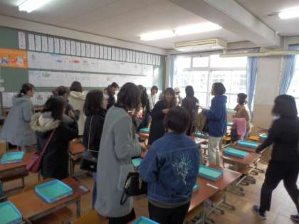 1年生では,じゃんけんゲームをしながら