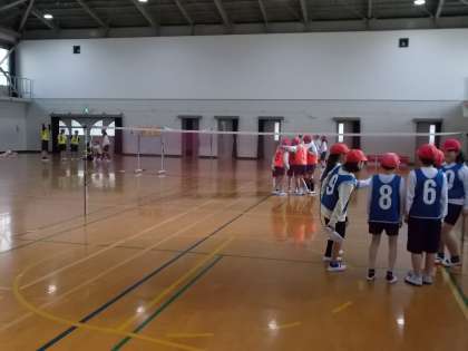 体育科では,ソフトバレーボールの学習に入っています。チームで作戦を考えたり,自分のめあてを決めたりして,頑張っています。一人が相手のコートに返すのではなく,上げたボールをチームの人が打つなどして工夫しているグループもあります。しっかり考える体育にしていきたいです。