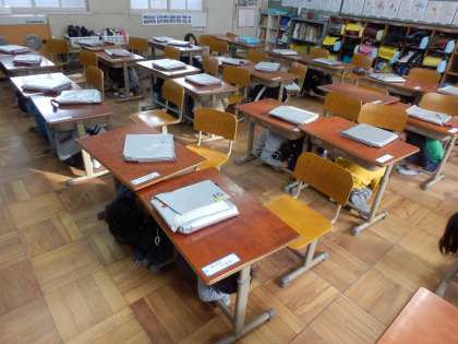 学校では,一人一つ防災頭巾を常備しています。