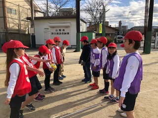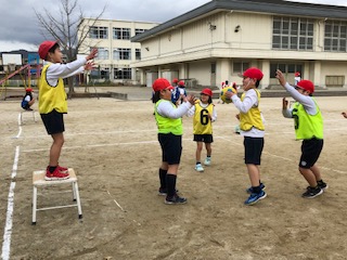 「エンドボール」で学んだパス回しや声かけの方法をフル活用して頑張っています。