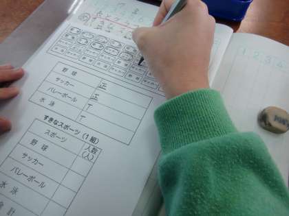好きなスポーツ調べの結果を分かりやすく表にまとめる学習をしました。どのように整理すればよいかをみんなで話し合いました。