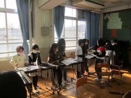 それぞれのパートに分かれて練習しました。お互いに教えあって,上手になってきました。自信を持って演奏できる人は,まだ少ないですが,最後には綺麗な音色で演奏できるといいですね。