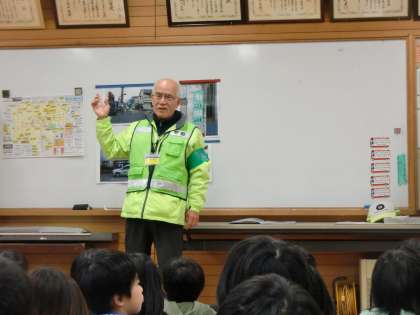 社会科で「事故や事件からくらしを守る」の学習をしています。私たちの地域ではだれがどのような活動をして安全なくらしを守っているかを調べています。そこで,地域の安全についてよく知ってくださっている【みまもり隊】のみなさんにお話を聞きました。