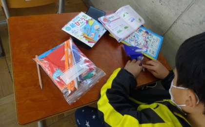 自分で何を作ろうか考えて,折り紙の本を見ながら作っていました。