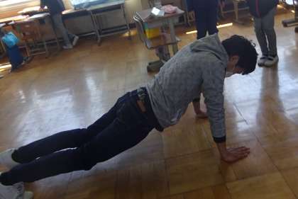 ちなみに・・・5年生の先生は体力づくりに「うで立てふせ」をしています!