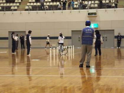 自転車の安全走行に関する知識と技能を競う京都府の大会が亀岡市でありました。1ヶ月あまり,時間を見つけて特訓した6年生の山階南A・Bの2チームが参加し挑戦しました。