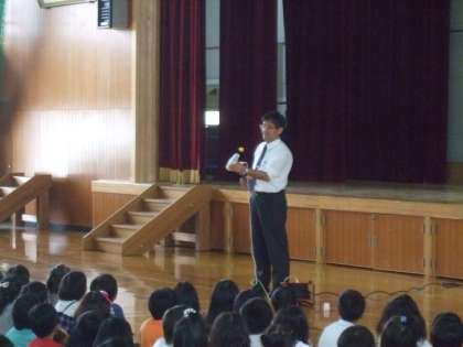 朝会の後,校長先生の科学実験<第3段>がありました。今回は,ドライヤーの風の上でピンポン玉を浮かせるもの。ドライヤーの風で,上下ではなく左右に揺れるのが面白かったです。さらに,ドライヤーを傾けると,ヒンポン玉は宙に浮いたまま?なぜ?