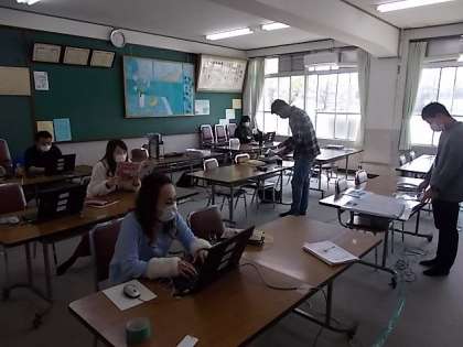 コロナウイルス感染防止予防対策として,教職員も「密」にならないように,職員室を増やしました。今まで会議室であった部屋を改装して,臨時職員室として仕事をしています。