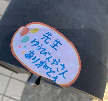 今日,かだいをポストに入れるときに,ポストにはり紙がしてありました。そこには,メッセージが書かれていました。すてきだなぁと思いました。なかなかお家から出られない人が多いけれど,社会ではみんなのためにがんばっている人がいます。みなさんのお家の人もその一人かもしれません。どんな人が,みんなのために,がんばってはたらいているのか,お家の人と話し合ってみるのもいいですね。