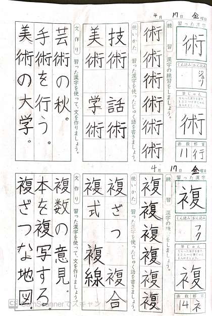 とくに漢字の練習。