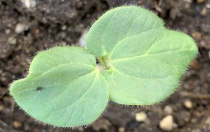 このしゃしんは,オクラです。学校でそだてているしょく物のしゃしんをとりました。しょく物のかんさつがなかなかできない人もいるかと思います。色や形は分かりますが,大きさは分かりにくいと思います。上からと,横からととったしゃしんですが,かんさつしてみてください。