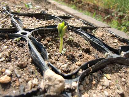4月24日に種をまいたツルレイシが芽を出しました。