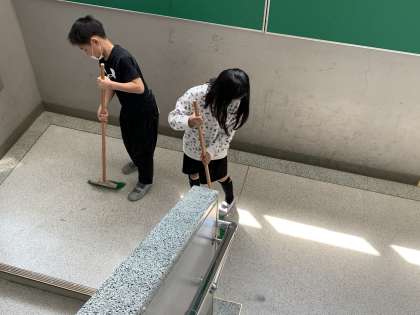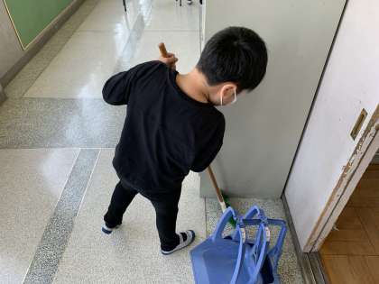 やく3か月間,学校にみんなが来ていないので,ろう下や階段にほこりがたまってきました・・・。学習の間にあずかりで来ている3年生の友たちが,そうじをしてくれました。みんなが学校に来るから,学校もきれいになるんだなぁと思いました。