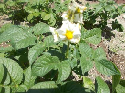 そんないい天気の中,じゃがいもの花が咲きました!かわいいですね。