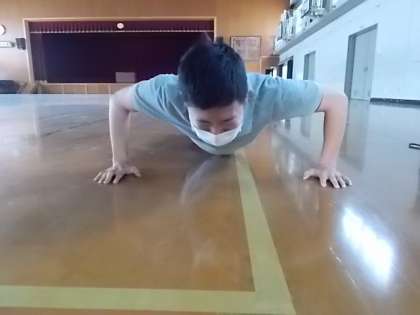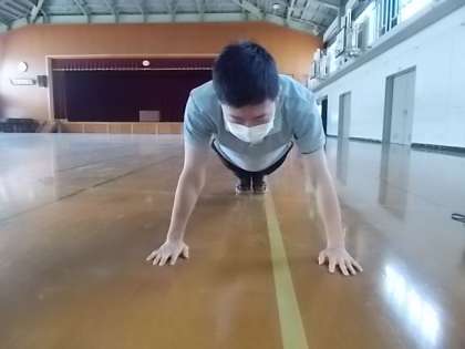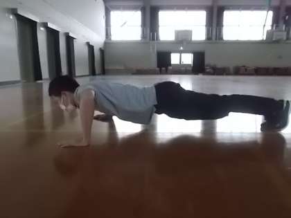 しんどい時はヒザをつけてやっても十分効果があります。ゆっくり上げたり下げたりすることが大切です。