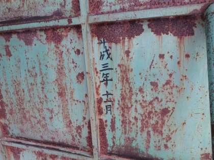 運動場にある大きな的。何気なく後ろを見てみると「平成3年 11月」とありました。おそらくこの学校に置かれた年月だと思います。