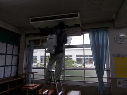 今日教室に入ると,エアコン点検の方が掃除機でほこりを吸っておられるところに遭遇しました。