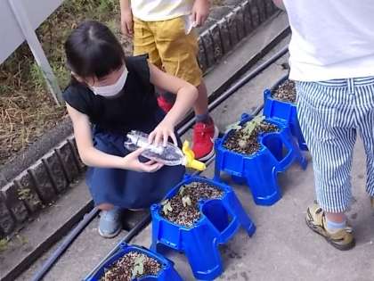 芽がでてきたアサガオに水をやったり、観察したりしました。