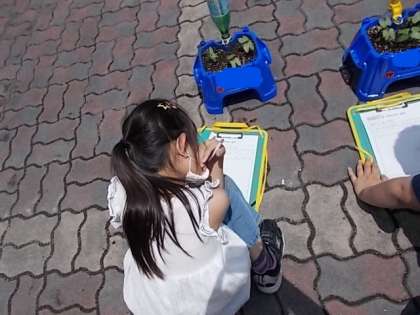 観察ボードを持って外でスケッチをしました。