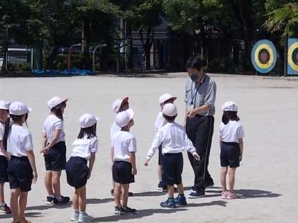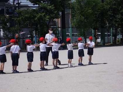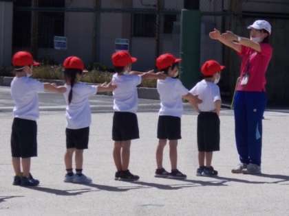 1列・2列と先生の指示に従って並ぶ練習が出来ました。