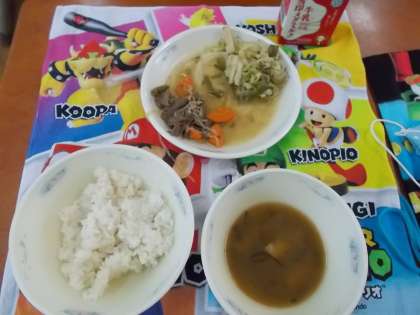 今日のみそ汁には,京都市の京北地域で作られた京北みそを使っています。