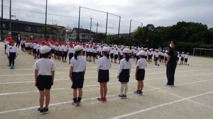 2年生が司会をして,式を進めました。スポーツフェスティバルのめあては,「競技を一生懸命取り組み,みんなで楽しもう」でした。80m走もバラエティ走も,全力で取り組むことができました。閉会式では,2年生として,かっこよく立つ姿や聞く姿を見せてくれました。