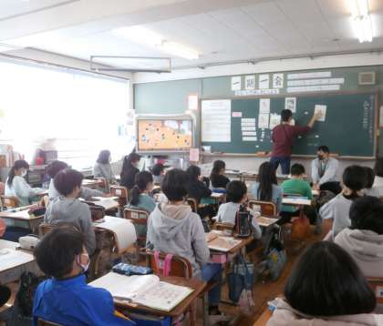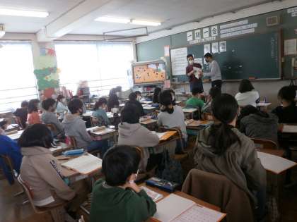 外国語の学習をしています。今日は,ALTのアンソニー先生がきてくださり,一緒に学習をしました。とても楽しそうに授業を受ける子どもたちの姿が見られました。