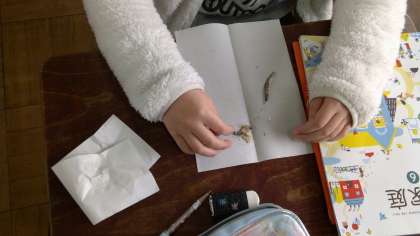 家庭科の学習で,ご飯とみそ汁の作り方について学習しています。今日は,にぼしを使った出汁の取り方について学びました。実際ににぼしの下ごしらえをしてみました。ぜひおうちでも,にぼしの出汁を使ったみそ汁に挑戦してみてください。