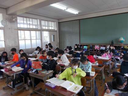国語科で「なまえつけてよ」の学習をしました。今日は,中心人物を見つけるのと,場面分けをしました。中心人物は春花か子馬かで話し合いをしました。交流のなかで,どちらが中心人物になったのか,場面は何場面構成になったのか子どもたちに聞いてみてください。