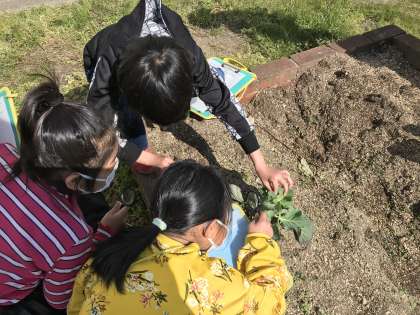 次は外に出て,虫めがねを使って生き物を観察しました。詳しく観察することができました。