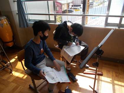 今日は音楽科で,リコーダー練習を行いました。まずは,楽譜に音階を書きました。その後,テンポに気を付けながら練習しました。
