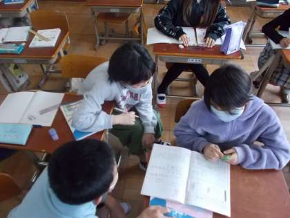 算数科では体積の勉強を始めました。初めて習うところなので難しいこともたくさんありますが,クラスメイト同士で互いに教えあって学んでいます。