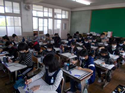 6年生になって初めての書写の学習をしました。文字の大きさと配列を意識し,漢字とひらがなのバランスに気を付けながら丁寧に書きました。