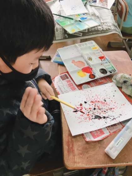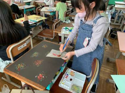 今回は絵を描くのではなく,色々な技法を使って模様で作品を表現しました!色々な工夫があり,個性あふれる作品が出来上がりました!