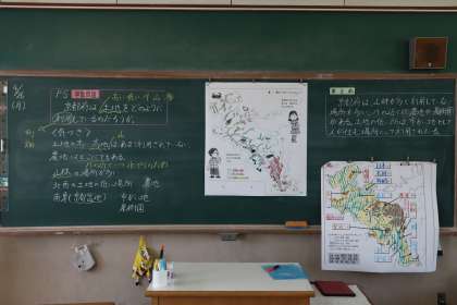今日は,その土地の特色を生かした産業に目を向けて学習を進めました。土地の高い所・低い所での利用方法の違いを見つけることができました。