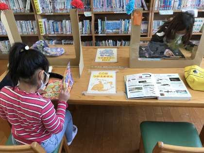 今年度初めて,図書館を利用しました。どの子どもたちも待ちに待っていた様子で読書に没頭していました。読書をすることを楽しんでほしいです。