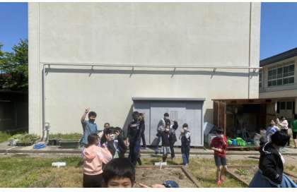 学校園をお散歩しました。緊急事態宣言が発出され,鬼ごっこなどはできませんが,みんなとのんびり歩けて気持ちよかったです。ちなみに6年生は理科で使うジャガイモを育てています。また,成長を見に行きましょうね!
